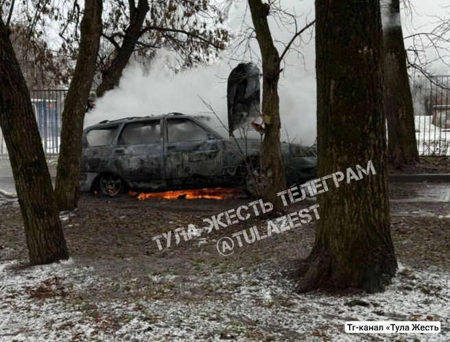 Фото с места происшествия опубликовал телеграм-канал «Тула Жесть». Судя по кадрам, огонь полностью охватил машину.